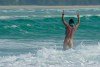 La vague était épique. Elle devait faire pas loin d’un kilomètre de long. Tellement longue, en fait, que j’avais les cheveux secs en arrivant au bout! Je prenais des vagues à répétition, et chaque fois je courais sur la plage pour revenir au break. Avec le sable et l’eau salé, j’ai fini par être irrité et je me suis dit: fuck it , j’enlève mes board shorts et je surfe tout nu! Ça a donné des images assez mémorables!